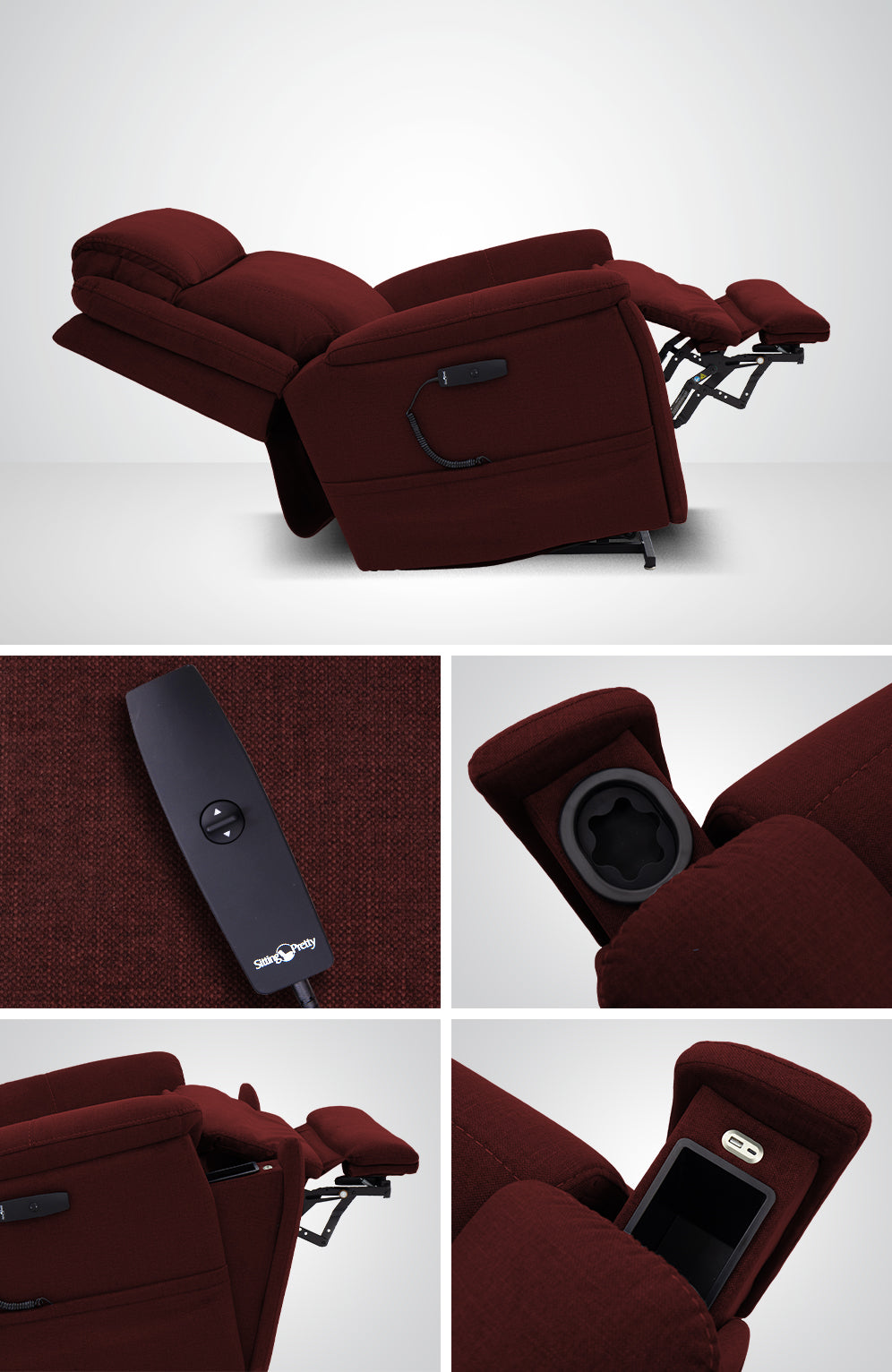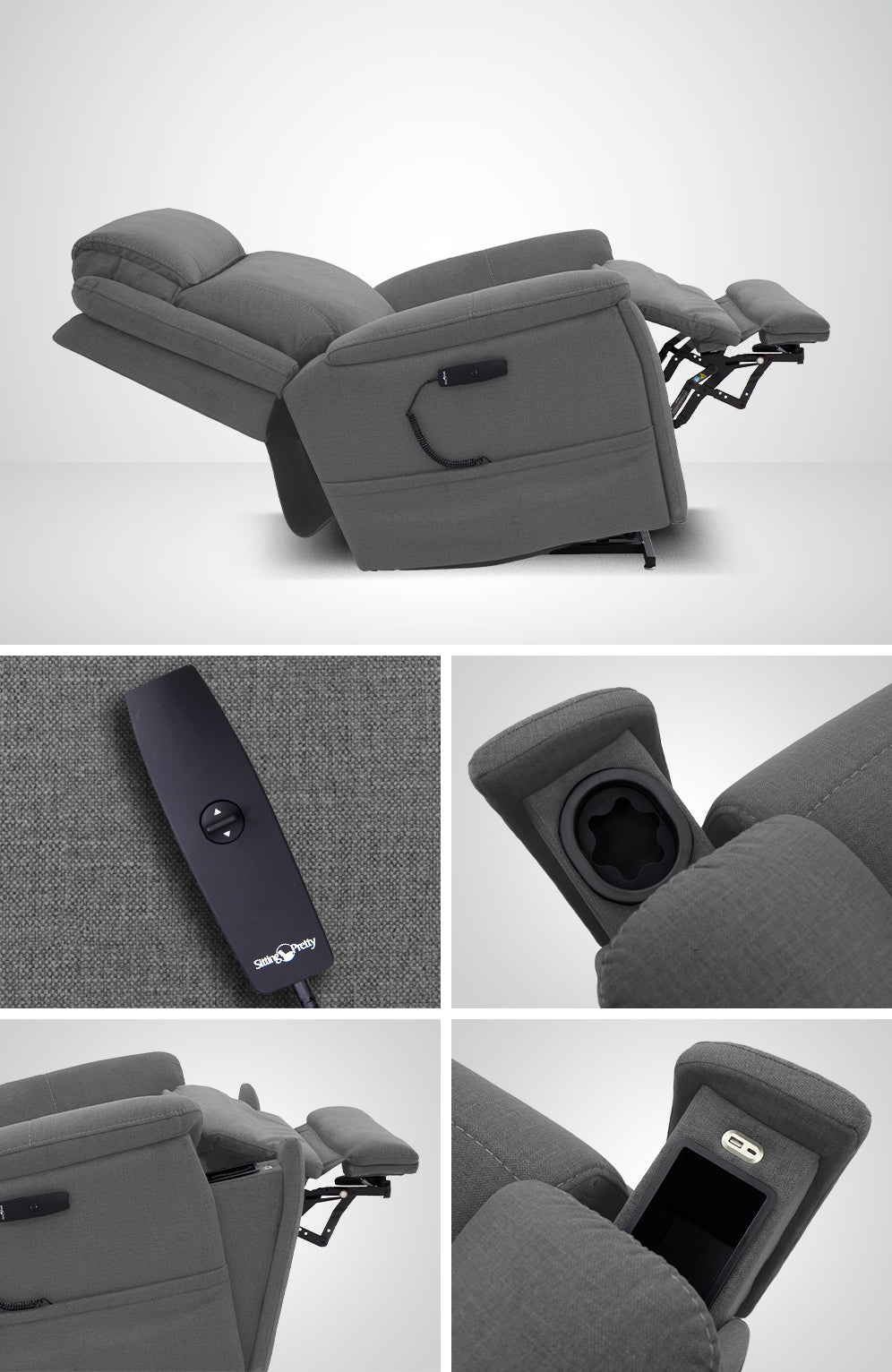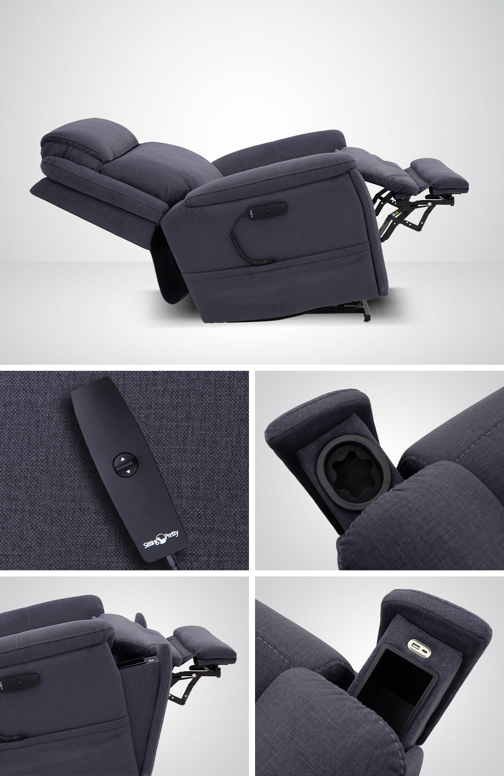 The Sitting Pretty lineup of power lift recliners from Pride® Mobility exude style and sophistication. These three-position recliners offer superior craftsmanship and functionality. Enjoy convenience with a magnetic hand control holder on either side of the chair*. Stay connected with USB charging ports. And eliminate pressure points with a chaise pad design that fully supports the legs.